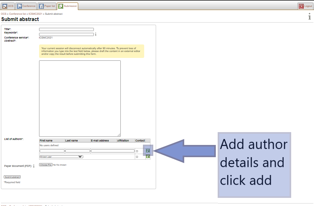 - We use Springer's Online Conference Service system for submission of papers and review process. Unregistered authors should first create an account on Springer's Online Conference Service to log in.