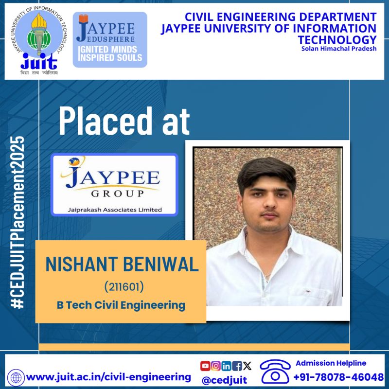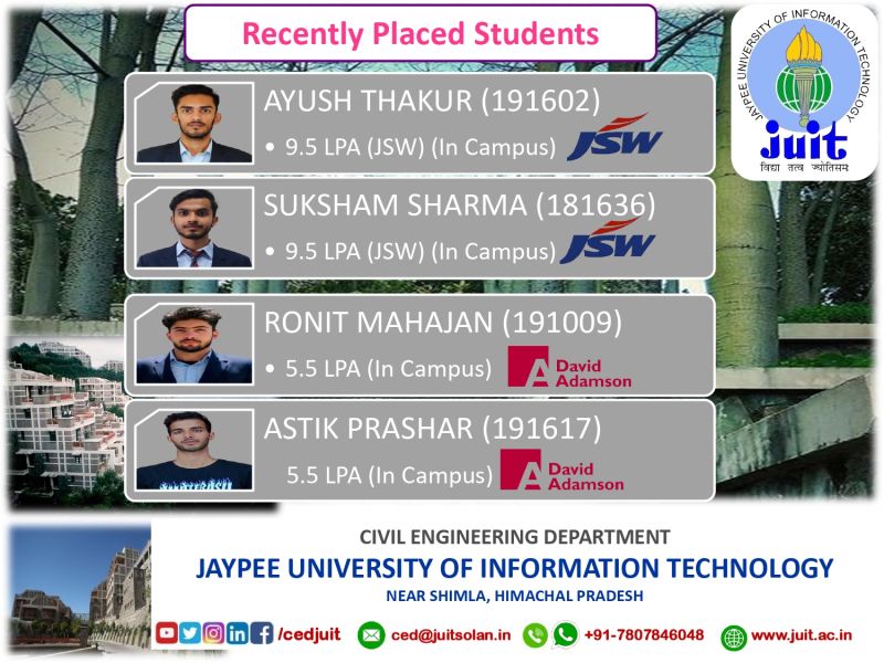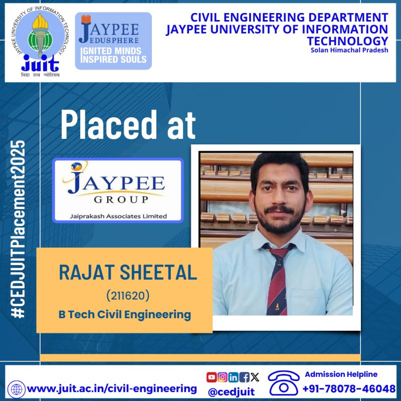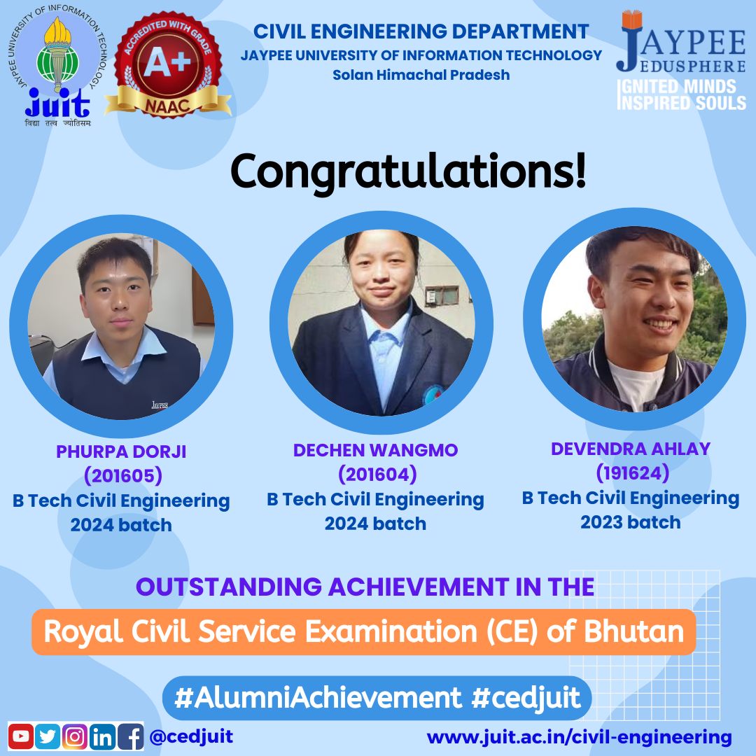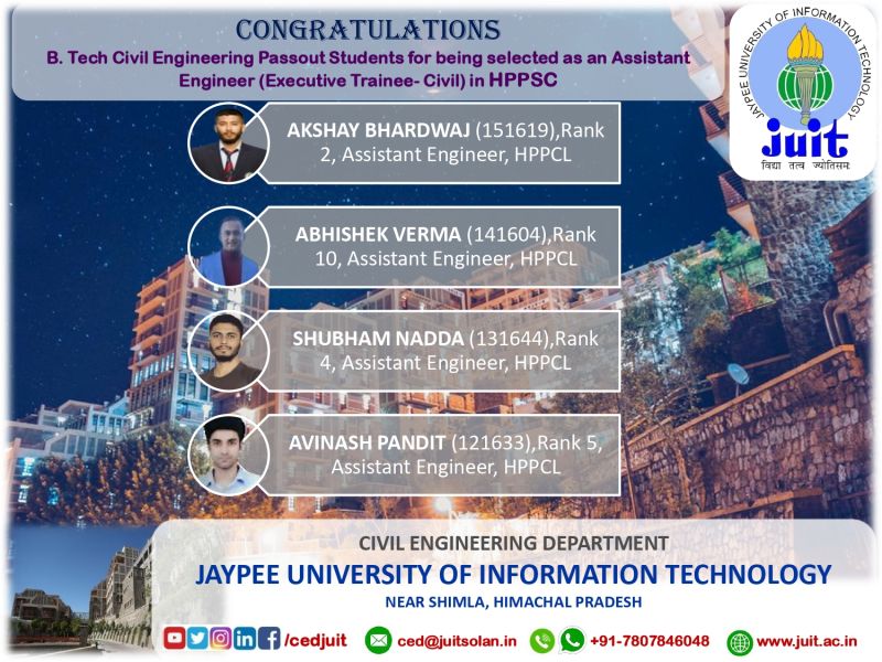 Alumni of CED of Jaypee University Selected as Assistant Engineer (Executive Trainee- Civil) in HPPSC