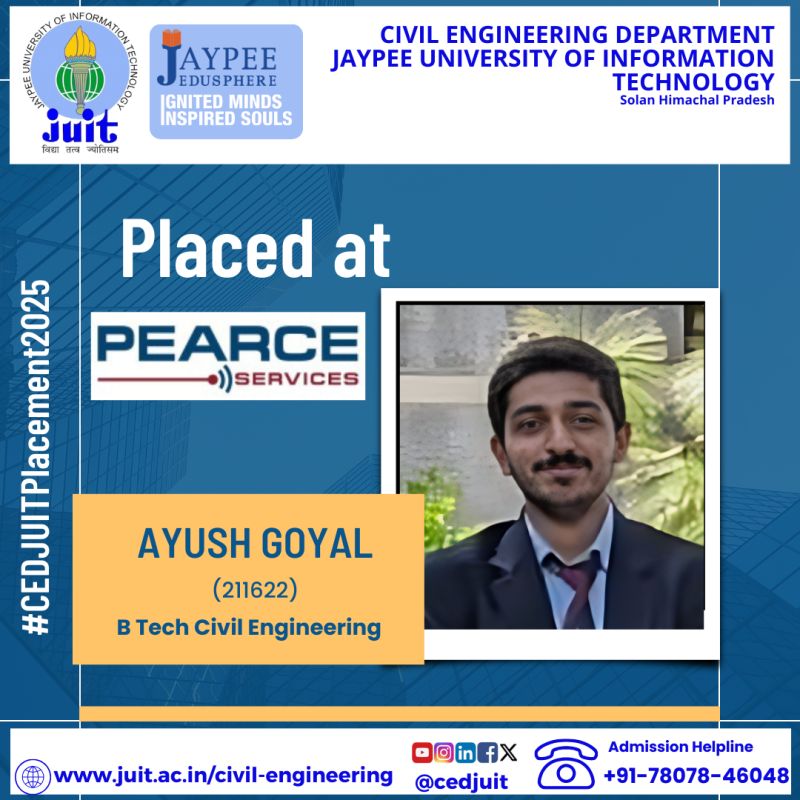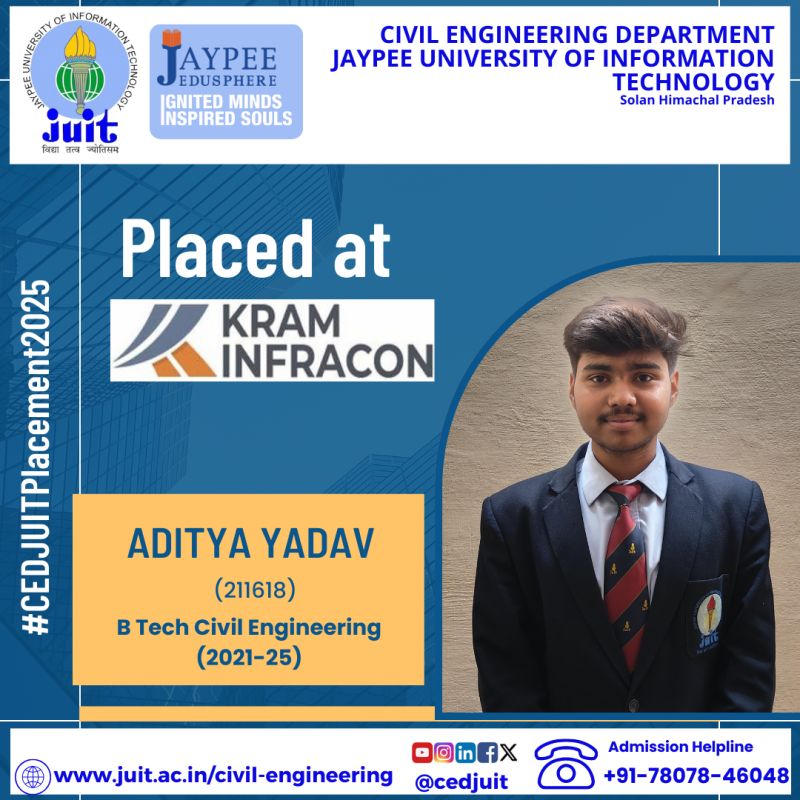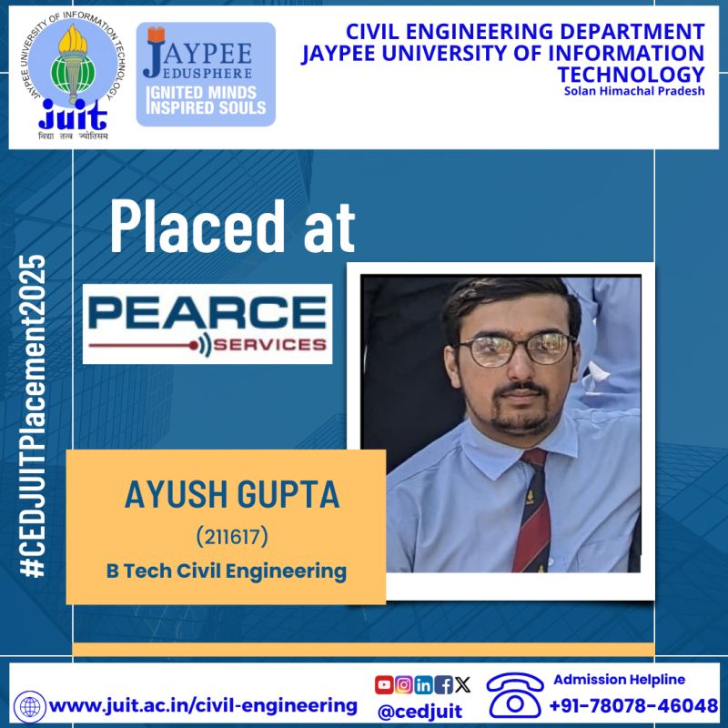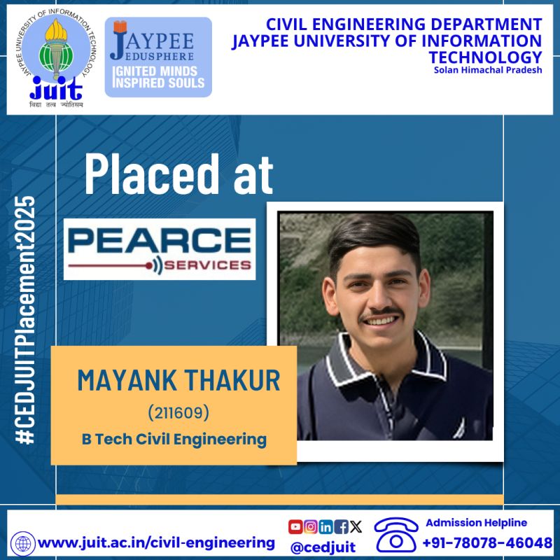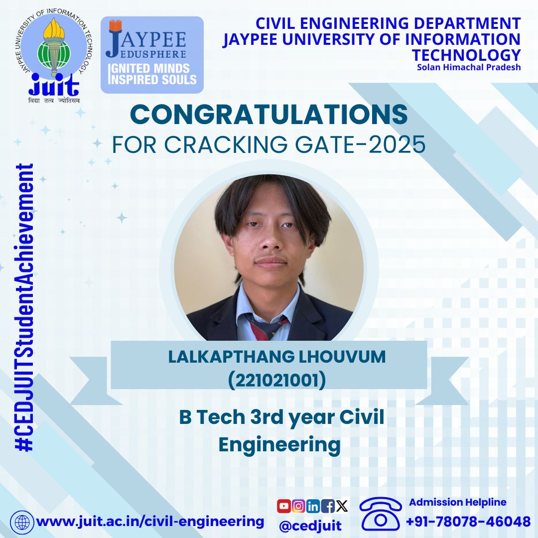 Alumni of CED of Jaypee University Selected as Assistant Engineer (Executive Trainee- Civil) in HPPSC