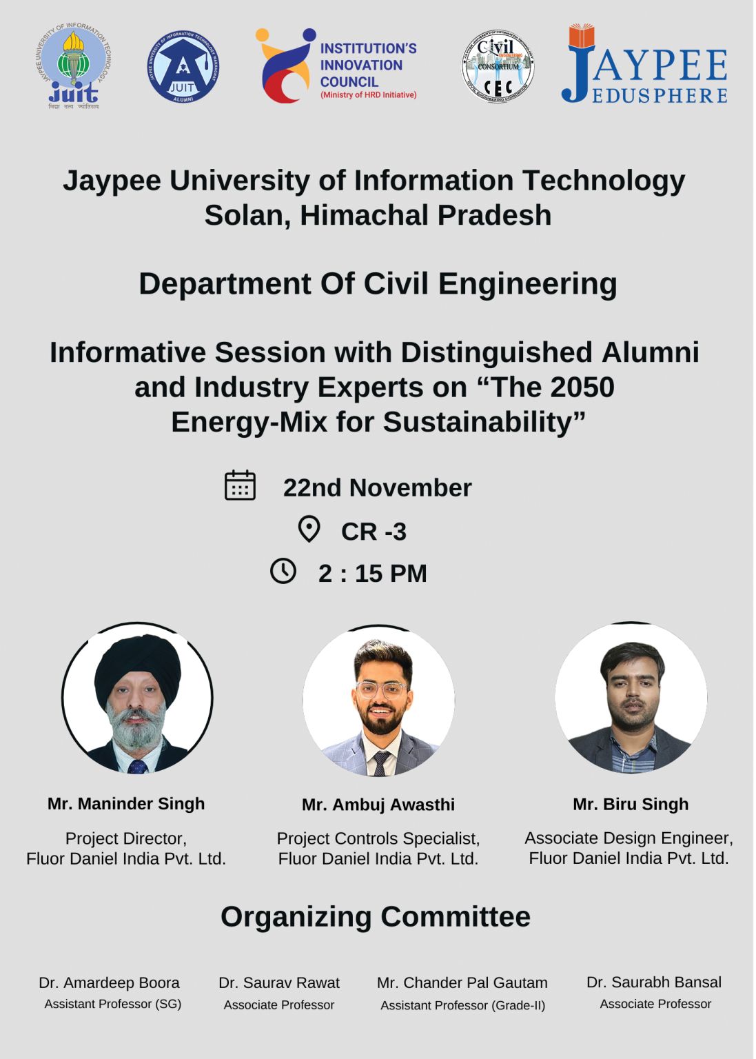 Informative Session with Distinguished Alumni and Industry Experts on “The 2050 Energy-Mix Sustainability: 22nd November, 2024