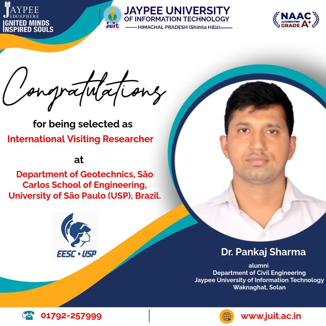 Dr. Pankaj Sharma, selected as International Visiting Researcher at Department of Geotechnical São Carlos School of Engineering, University of in São Paulo(USP), Brazil.