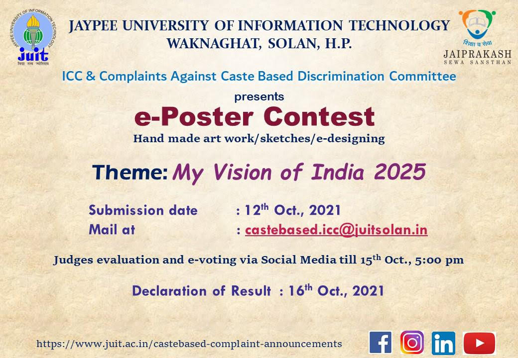 | e-Poster Contest to be organised by Internal Complaint Committee (ICC) and Committee For Complaints Against Caste Based Discrimination: 12th October 2021 | Link |
