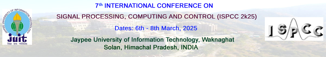 7th International Conference on Signal Processing, Computing and Control (ISPCC 2k25) will be organized by Jaypee University of Information Technology, Waknaghat, India. The aim of the ISPCC is to serve for researchers, developers, educators working in the area of signal processing, computing, control and their applications to present and future work as well as to exchange research ideas. ISPCC 2025 invites authors to submit their original and unpublished work that demonstrates current research in all areas of signal processing, computing, control and their applications.