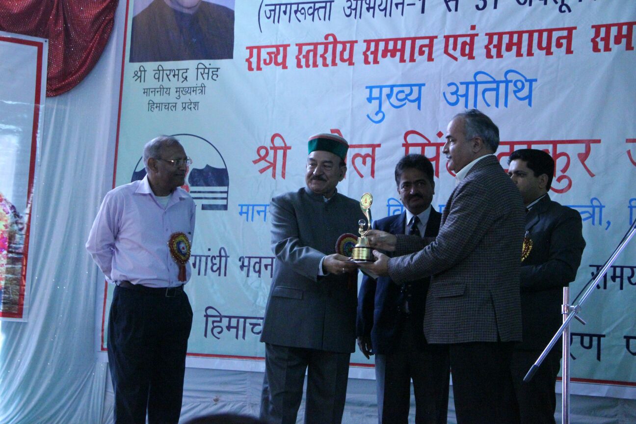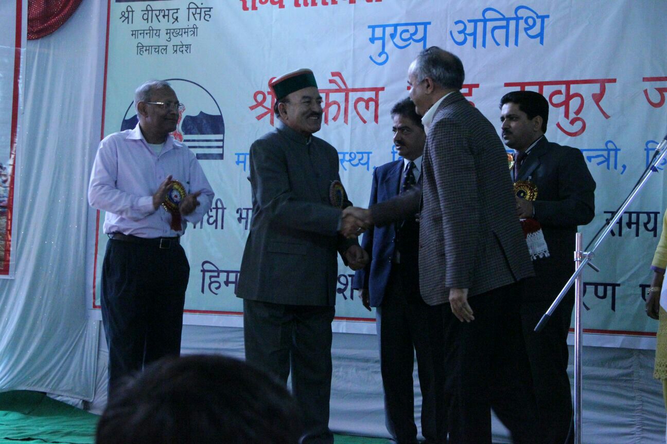 State level function was held at Mandi and the Health Minister of Himachal Pradesh Govt. Sh. Kaul Singh Thakur, honoured Jaypee University of Information Technology, Waknaghat for one of the biggest blood donors in the state. Dr. N.S. Jaswal, CMO, JUIT received the prize on behalf of the University.