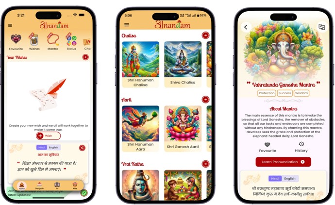 Company Name: Adwicorp Services Private Limited CIN No.: U62099UT2025PTC018563 TAN No.: MRTA25229B PAN No.: ABCCA1180D DPIIT No.: N/A Date of Registration : 04 February, 2025 Team Name: Aanandam Team members: Divyansh Goel 221030387 Mentor: Prof. Dr. Shruti Jain Brief about the startup: Aanandam is a spiritually driven digital startup that brings the power of ancient Indian mantras and mindfulness practices into modern daily life. Designed for students, professionals, and families, Aanandam aims to make inner peace, focus, and spiritual connection accessible anytime and anywhere. In an increasingly stressful world, the platform leverages the scientifically supported benefits of mantra meditation to help users calm the mind, improve clarity, and build positive habits. The app offers guided mantra chanting with bead-based counting, meditation sessions, a rich devotional library, festival calendars, daily inspirational content, and curated spiritual resources for all age groups. A unique feature allows users to personalize their spiritual journey by saving favourite mantras and practices, making spirituality practical and personal rather than one-size-fits-all. With a growing global user base, Aanandam represents a thoughtful blend of tradition and technology, transforming everyday screen time into meaningful moments of mindfulness and self-growth. |